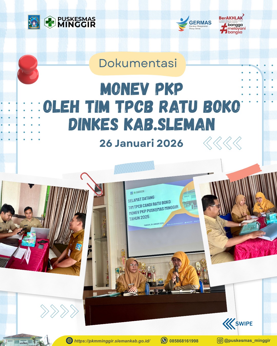 Pada tanggal 26 Januari 2026, Puskesmas Minggir kedatangan Tim TPCB Ratu Boko Dinkes Sleman dalam rangka Monev PKP Puskesmas Minggir.